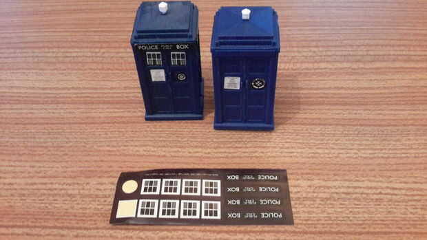 Tire de la señal de Tardis 'tire para abrir' y pegar en la parte delantera de la Tardis.