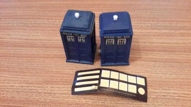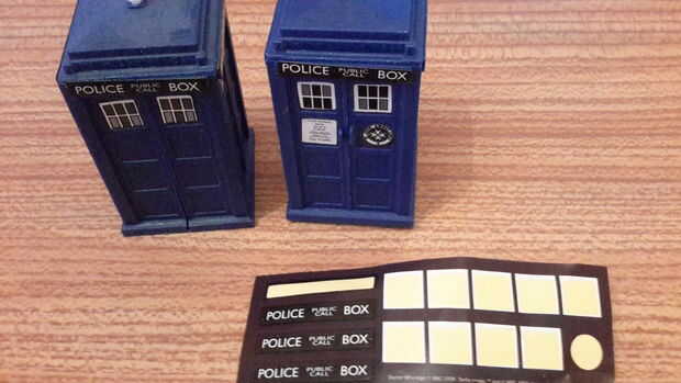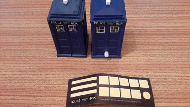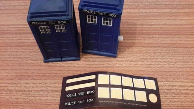 Debe tener 4 policía llamada caja muestra en su hoja de etiquetas. Comience en la parte delantera de la Tardis y ponga el 1er signo de llamada caja de policía etiqueta engomada en la Tardis justo por encima de las ventanas. Es cierto que el Tardis alrededor para agregar los otros 3 signos.