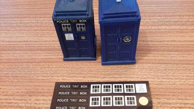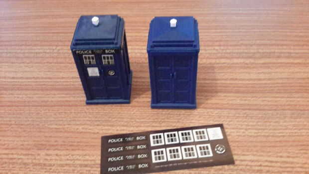 Sacar la pegatina de la ambulancia de San Juan y pegarlos en la parte delantera de la Tardis.