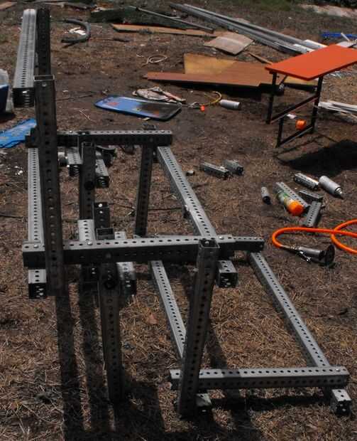 En lugar de soldadura, básicamente tuve que cortar mi Telespar al tamaño deseado y luego usar tornillos de 2-3 (con tuercas y arandelas) por intersección para crear articulaciones estables. Para realizar este proceso es factible, no cualquiera de las tuercas de apriete hasta que ya tienes todos los tornillos y tuercas de una intersección insertado.