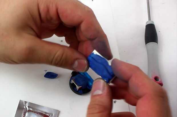 - Preparar una capa bastante homogénea de sugru y añadir un poco de extra en caso de que usted tiene que llenar grandes lagunas.