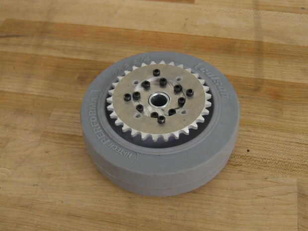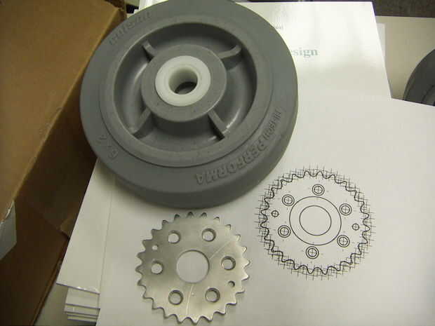 Las 3 primeras imágenes muestran este proceso a algunas 6" ruedas industriales ruedas que mi primer robot de competencia 2006. Los piñones se compraron partes AndyMark , y el perfil se generó utilizando Autodesk Inventor (de momento, McMaster-Carr no tenía archivos descargables piñón CAD!)