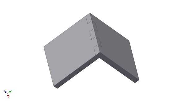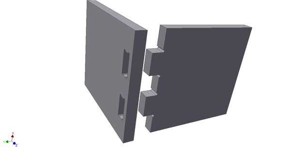 El método más simple de unir placas perpendiculares con las articulaciones del dedo. Esto no es tanto un conjunto como alineación característica, sin nada más (por ejemplo, tornillos o soldadura) para mantener la articulación unida. La articulación es sólo fuerte en la dirección del borde, donde los dedos se cargan en compresión. Este tipo de articulación, especialmente con ninguna copia de seguridad, es vulnerable a flexión creo que abriendo un libro duro.