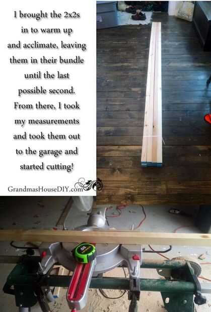 Primero envié a Joe a la yarda de la madera para hacerme unos 2x2s. Vino atados (muy bien) así que les trajimos en calentar y aclimatar mientras todavía agrupadas. (Es invierno aquí y 2x2s son notorios para torcer y deformar). Entonces, tomé mis medidas. Tome nota: cuando usted está midiendo para puertas, darles un respiro para hacer pivotar sobre. Asegúrese de que no construirlas tan alto que nunca alcanzará en el piso etc.. Tomé mis medidas y mis paquetes de 2x2s para el garaje y llegó a la corte. He construido dos sistemas de puertas a la vez, un conjunto para nuestro armario del zapato de capa de entrada y un sistema para nuestro armario de sala de lavandería.