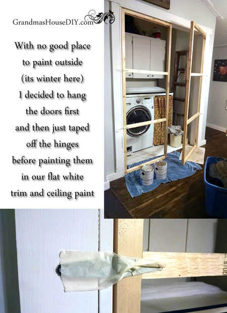 He decidido colgar las puertas inmediatamente después del montaje y antes de la pintura. Quisiera no de hecho normalmente no, pero es invierno aquí así que tuve que pintar dentro independientemente así, era sólo más fácil de colgar y luego pintar colgante. Yo sólo con cinta de las bisagras. Con las dos manos de pintura blanca dry agarré mi grapadora y empezó a colgar a la tela. (He comprado dos cortina visillos de amazon para solamente $6!) Ahora puede usar a absolutamente cualquier tela que usted quiere aquí, aunque solo podría virar demasiado madera contrachapada en la parte posterior del marco y pintarlo todo cualquier color que usted quisiera, o alambre de pollo para un aspecto de país, o la pantalla para una mirada de puerta de pantalla! Las opciones aquí son simplemente ilimitadas y me encanta que si me enfermo de estos velos que sólo puede rasgar y reemplazarlos con algo nuevo!