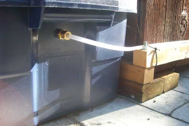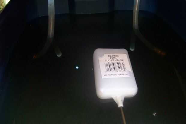 Uno puede ampliar este acto de equilibrio a cualquier número de envases que están todos en el mismo nivel. Las plantas toman el agua a través de sus raíces, disminuye el nivel del agua en el embalse de GrowTainer, como el agua fluye desde la FillTainer a la GrowTainer--incrementalmente y automáticamente, por lo que el nivel del agua dentro del depósito de GrowTainer realmente nunca cambia lo suficiente que pudo verlo. Todo eso hace que la única FillTainer es tiene una válvula de flotador (una parte de $4,56 que se usa comúnmente en refrigeradores evaporativos--también conocido como * pantano * enfriadores). La válvula de flotador está conectada a un grifo de manguera con un tubo de vinilo blanco de 1/4". La válvula de flotador se ajusta para mantener un nivel de agua 'fijo' dentro de la FillTainer. Lluvia puede causar el FillTainer que se derrame un poco, aproximadamente 1/2"--pero este añadido también flujos de agua en el GrowTainers. Una vez que el nivel eleva aproximadamente 1/2" sobre el nivel del agua 'fijo', el exceso fluye hacia fuera de los agujeros de desbordamiento en la GrowTainers.