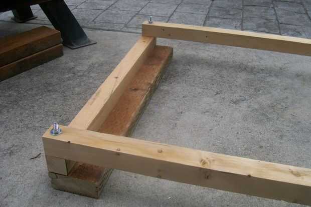 Cortar cuatro 2 x 4 PT 'durmientes' a la misma longitud que las piezas del marco corto = 22-1/2". Para la tapa de 1 x 2 ajuste, las dos piezas más cortas son 22-1/2" y las dos piezas ya son 28-1/2". Los extremos cortos bajos el cuadro inferior del perímetro se enroscan hacia abajo sobre los durmientes que terminan a ras con los extremos del contenedor. Hay cuatro durmientes en cada contenedor, pero los restantes dos durmientes se mantienen en posición con los tornillos futuro a través del piso del contenedor. Estos contenedores tienen que ser rotado (final final) cada dos meses para mantener las plantas que crecen hacia arriba. Por lo que conserva un ancho de 20" abierta en el centro en los lados largos para caber el carro de mi aparato. Los durmientes espacio piso 1-1/2" hasta el patio, esto facilita deslizar la minicuchilla de la carreta del aparato debajo de ellos sin tener que volcar primero los envases lejos de la cesta de. [Actualización: lleno de agua y mezcla de rellenado húmedo, estos contenedores son h-e-a-v-y. Aunque he usado un carro de dos ruedas para moverlos, no encontré lo necesario girarlas.]