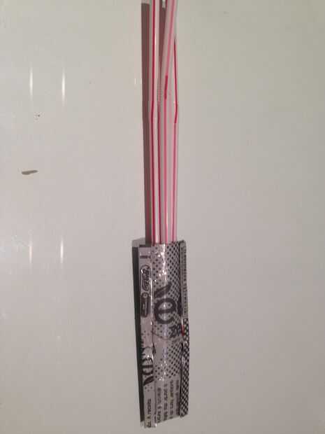 Em seguida, humedad una cola epóxi e espalhe por toda una parte de alumínio fechando os menores espacios até não haja nenhum buraco, com excessão de onde os canudos entraram.