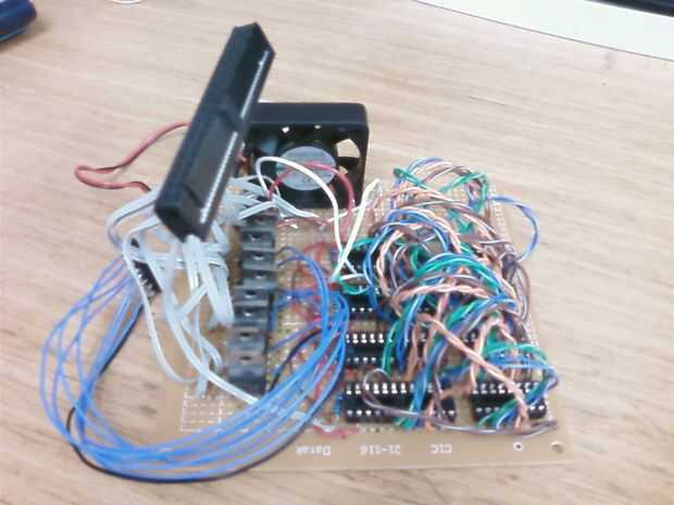 Encontré un viejo ventilador de ordenador 40mm con un conector molex hembra para enchufarlo a una fuente de alimentación de computadora. Esto fue perfecto. Una pequeña cantidad de flujo de aire a través de la viruta es útil y ahora tengo una forma fácil de proporcionar 5 voltios a los chips de controlador y el Arduino sí mismo.