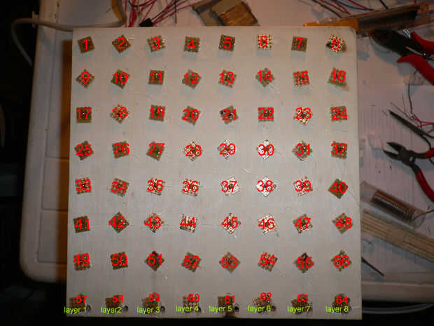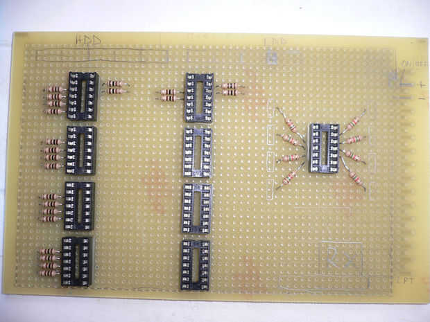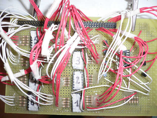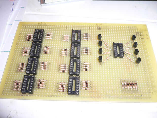Ahora, con mooooooooooooooooooore de paciencia, hacer las conexiones entre los componentes principales. En una segunda etapa, Conecte cada resistor/transistor a los conectores para conectar el cubo. Tome nota de todos los partidos registro de cambio de salida -> conectores de PIN. Esto será esencial cuando se suelde los cables diferentes para cada terminal del cubo.