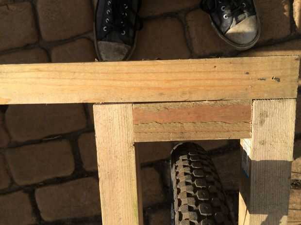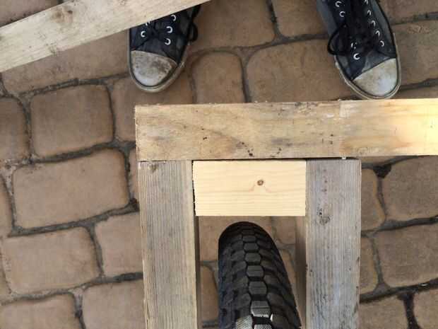 Para hacer el cuerpo acabo de poner dos barras en la parte delantera y trasera de los soportes de la rueda por lo que fue una forma cuadrada / rectangular. Luego añadí la pista delantera barra usando dos tornillos directamente a través de la barra transversal delantera. Esto fue sin embargo débil etcétera más adelante fortaleció. Esto era temporal.