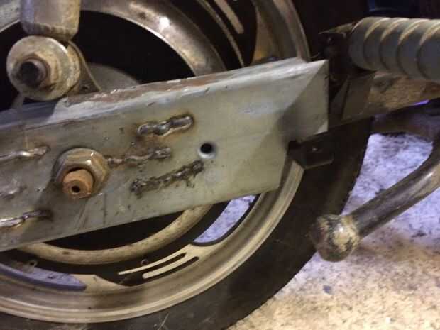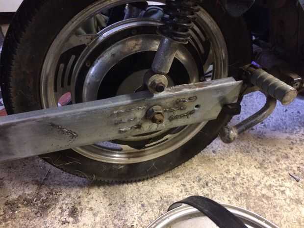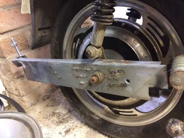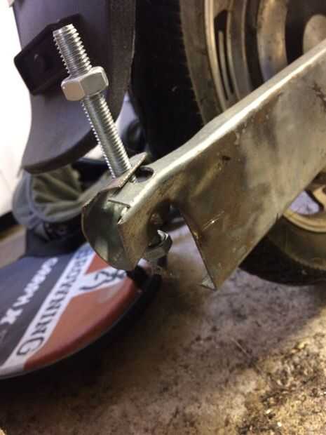Al lado de esto que a continuación drilled12mm que es el tamaño del eje trasero. Debo haber atribuyo esto otra vez en la parte delantera para garantizar de que pero no quiero que perfore o atornille en el marco de la bici. Es un enganche muy básico. El remolque delantero simplemente va en la parte superior del perno vertical y luego añadir otra tuerca encima que para garantizar el trailer por lo que no puede salir. El un problema importante con este gancho de remolque es que si la moto cae entonces el aluminio se dobla y puede llegar a ser más débil.