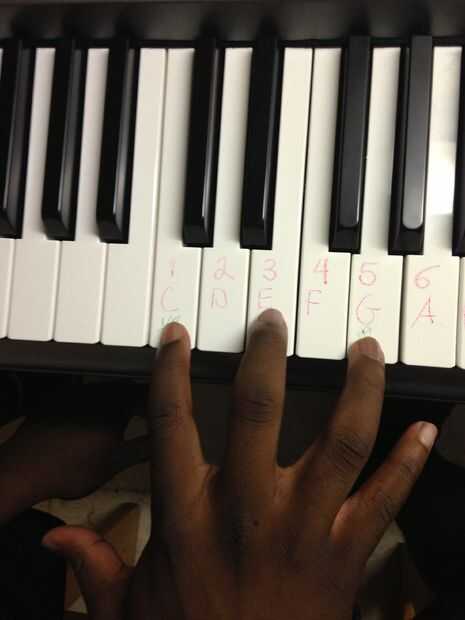 Ahora a colocar correctamente los dedos para tocar el acorde. Se utilice el dedo índice para jugar "C", su dedo medio para jugar "E" y finalmente el anillo de dedo para jugar a "G". Buscar las notas con los dedos de contar en la escala y en las teclas. Deben ser todas las teclas blancas que sus dedos están en.
