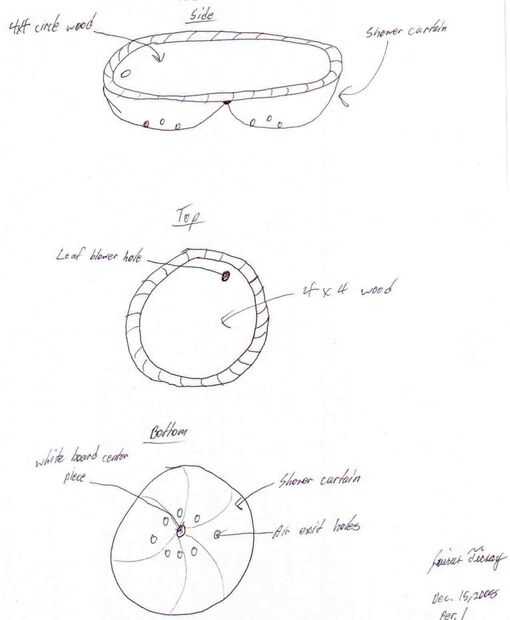 lo que usted necesitaMateriales* 12 3/4" 2 pies largos tubos de pvc* 1 X Junta* 4 T juntas* 4 codos (no mostrados)* Láminas más grandes de plástico y 5x5ft* 4 x 4 pies pieza de madera (no se muestra)* Vacío Motor o soplador de hojas* 24 pernos (no mo