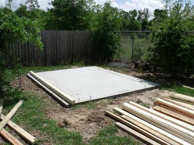 Cuando era más joven era un carpintero de estructura a tiempo parcial así que decidí huelga hacia fuera por mi cuenta y ver lo que pude llegar a. He elegido un tamaño de galpón de 10' X 12'. Hizo mucha investigación en línea, fue con un montón de planes y al final que terminé combinar muchas ideas en este galpón. También decidí que quería un piso de cemento. En la mayoría de los casos que esto aumentaría el costo de su construcción hasta $1000 dependiendo si verter a sí mismo y hacer todo el trabajo o si usted tiene un contratista lo haga por usted. Decidí hablar con una empresa de cemento local y me pusieron en contacto con alguien que le haga el trabajo para mí y ya que también me gusta hacer las cosas de la manera más fácil que escogí esta ruta para que mi piso me costó un total de total de $400! Sí yo y mi esposa estaba muy feliz sobre esto. También decidí no incluir barras de refuerzo en el concreto, en su lugar fui con el sistema de fibra que discutí con la empresa concreta, hizo el costo un poco más pero se "supone" que funciona igual de bien así que supongo que encontraré en un par de años.