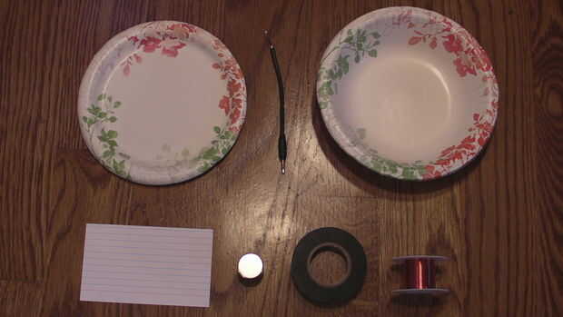 Para nuestro proyecto de física, realizamos un altavoz portátil de objetos simples, hogar! Puede conectar a cualquier reproductor MP3 o conectarlo a un amplificador para hacer que un altavoz más ruidoso.Paso 1: Reunir los materialesTres platos de pap