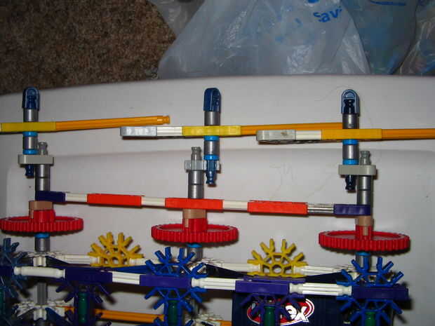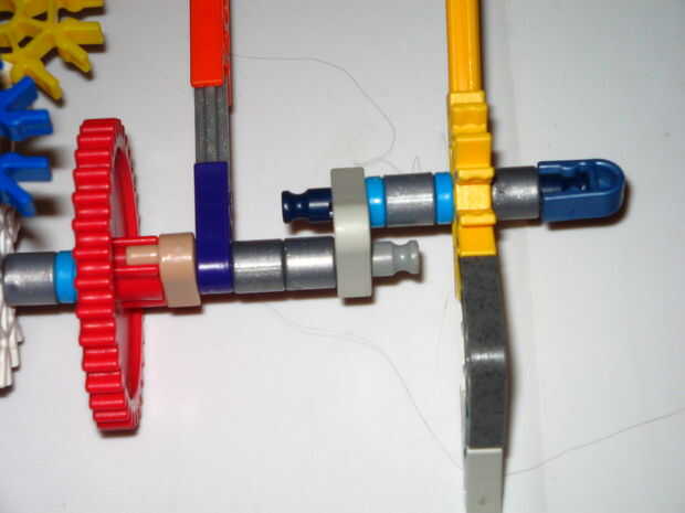 utiliza k'nex todos excepto el perno usado para conectar la cámara a la k'nex. Vean mi video de youtube sobre cómo hacerlo y usarlo.Paso 1: Construir la Base Conecte 2 conectores azules o negros con una barra blanca y añadir 2 conectores de media lun