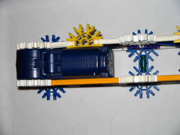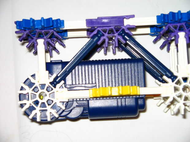 utiliza k'nex todos excepto el perno usado para conectar la cámara a la k'nex. Vean mi video de youtube sobre cómo hacerlo y usarlo.Paso 1: Construir la Base Conecte 2 conectores azules o negros con una barra blanca y añadir 2 conectores de media lun