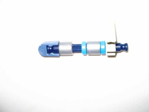 utiliza k'nex todos excepto el perno usado para conectar la cámara a la k'nex. Vean mi video de youtube sobre cómo hacerlo y usarlo.Paso 1: Construir la Base Conecte 2 conectores azules o negros con una barra blanca y añadir 2 conectores de media lun