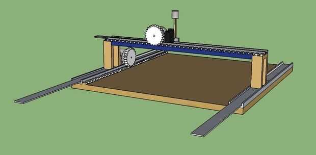 Se puede ver en las imágenes de abajo que cada motor de pasos se puede mover libremente alrededor de su eje gracias a los rodamientos del cajón. En el eje Y, cada carril está conectado con la estructura de madera, para que el eje X se pueden sentar encima de él. También en el eje X es el servo que sube y baja el poderoso imán, de modo que puede posicionarse antes de mover piezas.