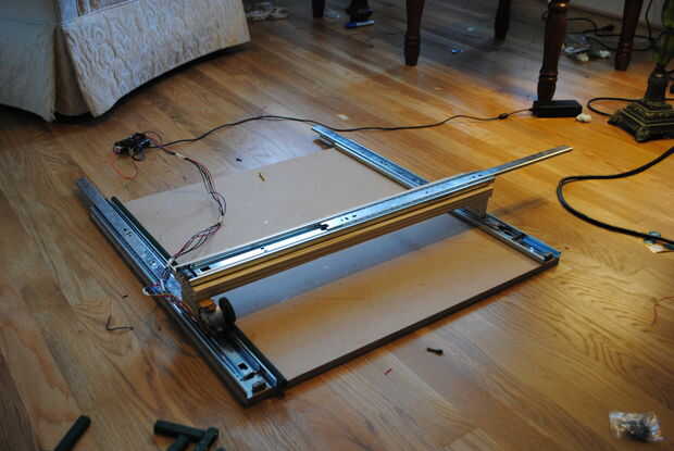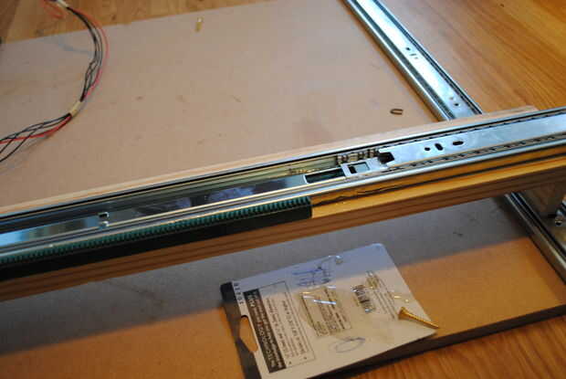 Una vez más, asegúrese de que tratar de mantener cualquier pegamento fuera del mecanismo deslizante. Si se permite algún pegamento entrar en el mecanismo, no todo está perdido. Afortunadamente para nosotros, los rodamientos de cajón vienen en pares, por lo que tendremos una izquierda más de todos modos. Montaje en los mismos orificios de tornillo y listo! A no hacerlo de nuevo! :)