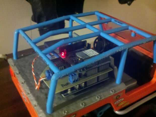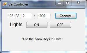 Junté mi primer controlador usando C# y MS Visual Studio 2008. Terminé con un formulario de windows poco agradable que hace controlar el coche con las flechas y posible.