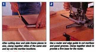 Para montar un bastidor, unte el pegamento en las mortajas y en todas las superficies de la espiga. Luego, unen los carriles a uno de los largueros y deslice el panel en su posición (foto 6). Coloque el montante opuesto en su lugar y fije el marco para tensar las articulaciones. Comparar frente a diagonal medidas para asegurarse que la Asamblea esté a escuadra y deje que la curación de pegamento. Proceder con el resto de los marcos y las puertas de la misma manera.