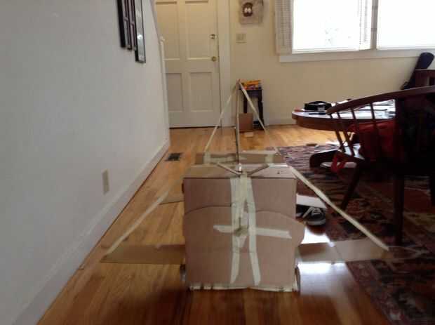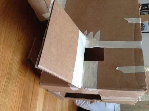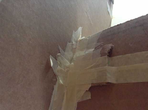 Las alas se adjuntará en el fuselaje con una cinta en la parte inferior de la caja. Utilice cinta de enmascarar como refuerzo por la grabación y fijación de ambos lados de cada conexión de ala-fuselaje.