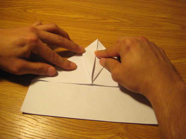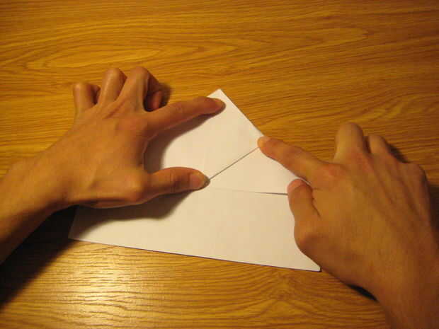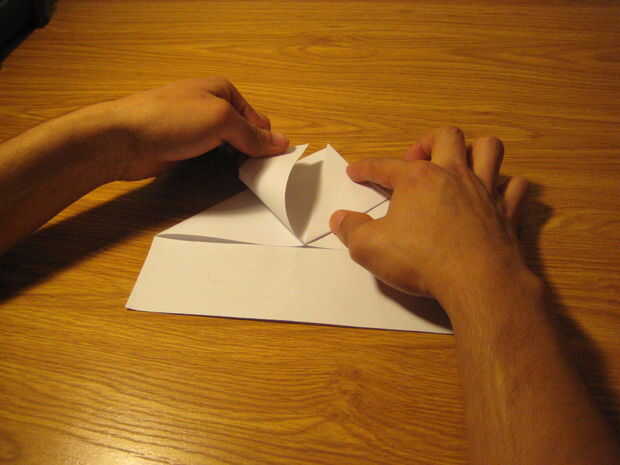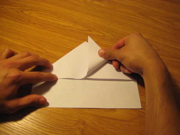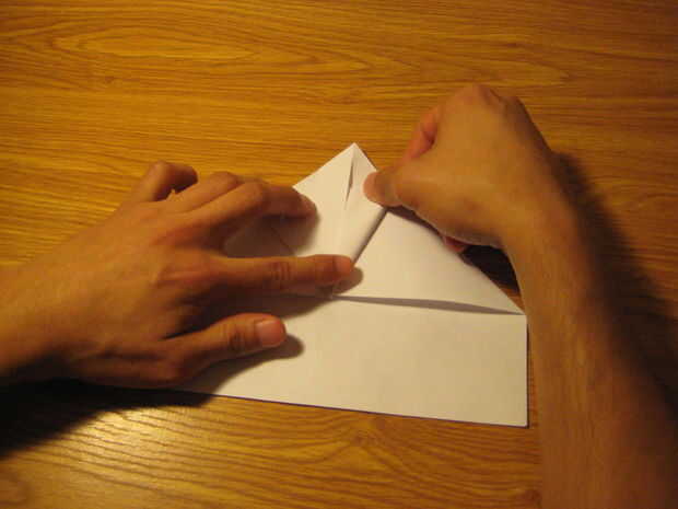 b. voltear las esquinas hacia la parte superior hasta que han creado una forma del diamante en el centro de la página.