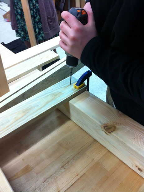 Ahora toma los dos 1X2X14.5 "y taladro en el extremo del Banco, colocar las dos piernas juntas haciéndolas más resistentes.