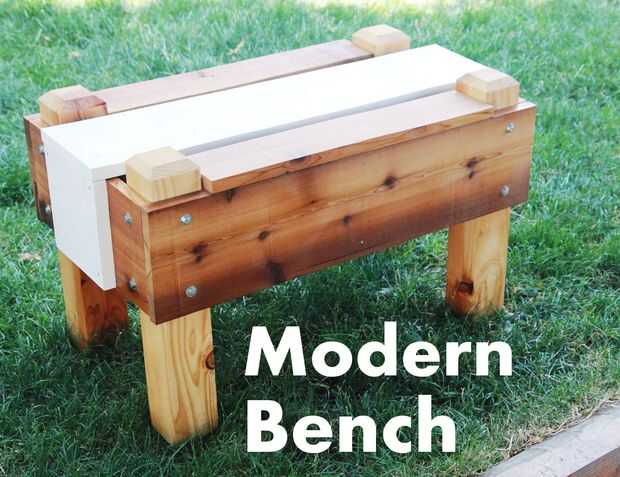 Este banco sencillo, moderno y robusto cedro, es fácil de construir y podría ser utilizado al aire libre o por qué no en el interior en un hall de entrada o algo así. Cuenta con una raya blanca por el medio, y en lugar de ocultar el hardware, los pernos y los clavos se incorporan como parte del diseño. Es fácil de construir y hacer una gran adición a cualquier espacio.