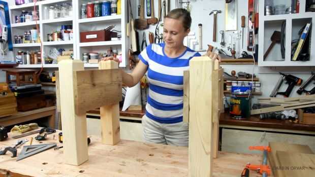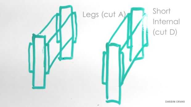 Para construir el Banco, empezamos con las piernas. Así que un par de piernas, cortar un es envuelto alrededor de dos piezas de cedro corte D, conectan. Así que vamos a construir en primer lugar estas dos secciones.