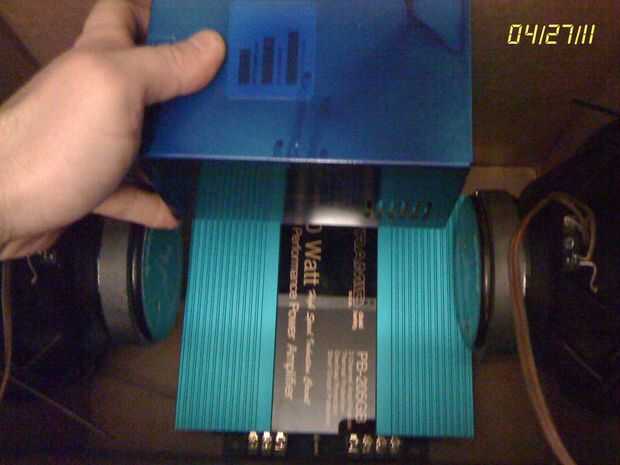 Me gusta cosas de reutilizar que tengo ahí. Recogí un amplificador de 200 vatios por sólo $20. También tuve un montón de cajas de mudanza y algunos Fosgates de Rockford que no estaba usando y varios pc fuente de alimentación unidades (PSU en adelante).