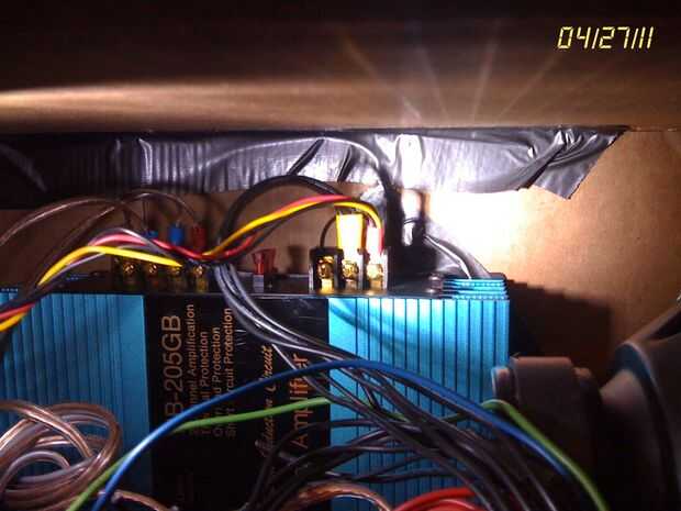 Ahora encontrar un lugar para ponerlo, cortar un agujero, cinta, la mierda outta aquello en lugar de cinta. No corté mi agujero lo suficientemente grande como para empujar la PSU a través y fue bien con ella ya que coincidía con el montaje de la AMP.