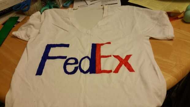 Después de la embarcación, es tiempo de considerar la fabricación de los trajes. Para este proyecto de barco particular, nuestro equipo decidió sobre el tema de la película "Náufrago". Así que hemos decidido poner cajas de fedex en la parte delantera del barco, y para los trajes, cada uno de nosotros pintó un diseño sobre camisetas blancas. Así que al final, una camiseta tenía "fedex" en él, y el otro tenía la cara de wilson que es el rostro pintado en el voleibol en la película. Por último, hemos añadido un pedazo de cartón simple sobre el lado del barco que dice a "Náufrago".