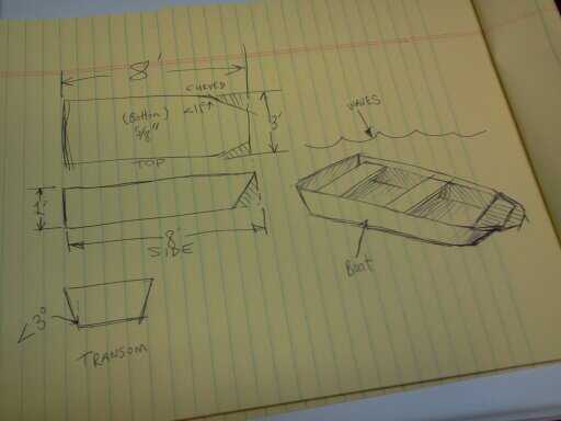 Así, con la mayoría de los pensamientos y planes en mi cabeza, rápidamente bosquejado un esquema básico de la embarcación en un pedazo de papel y me fui a la yarda de la madera.