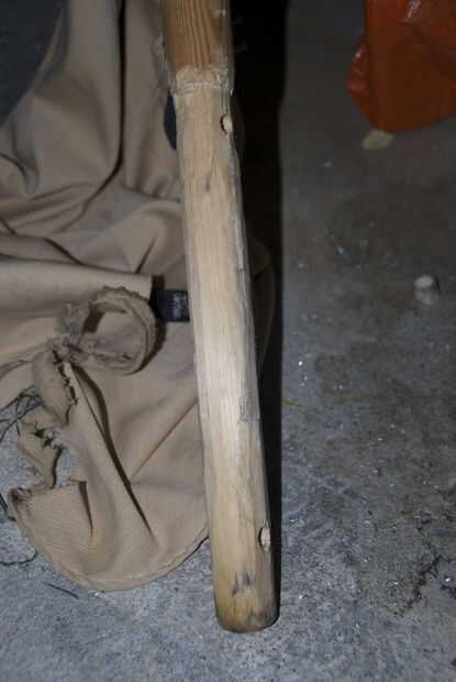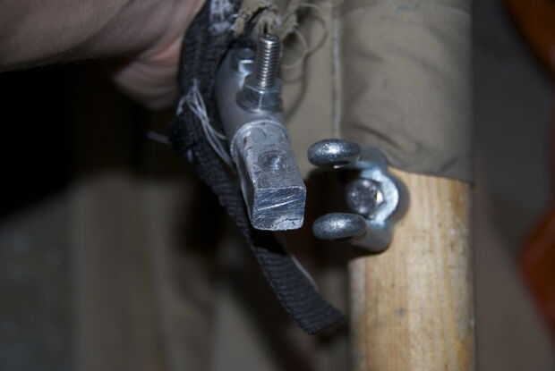 Ahora, francamente no tengo idea cómo explicar este siguiente paso, pero te doy una foto que te muestra lo que quiero decir. Inventé un pedazo de unos grilletes de metal y una barra de aluminio que modelado en mi fragua.