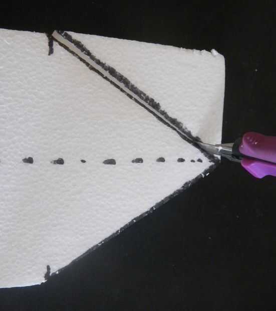 1.) dibujar una línea central discontinua abajo toda la longitud de la espuma de poliestireno 2" de cada lado. Esto se utiliza sólo como referencia.