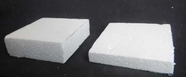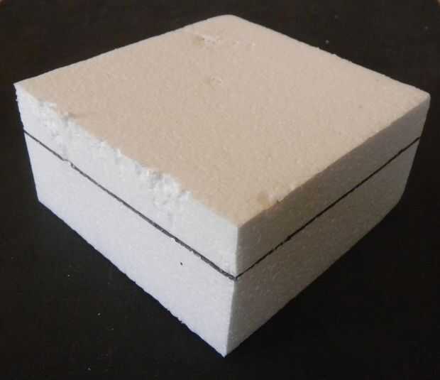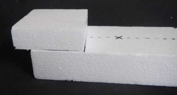 1.) toma el segundo bloque de espuma de poliestireno y corte una sección de 4" de 12" longitud.