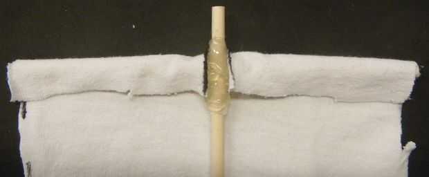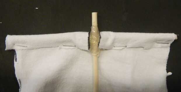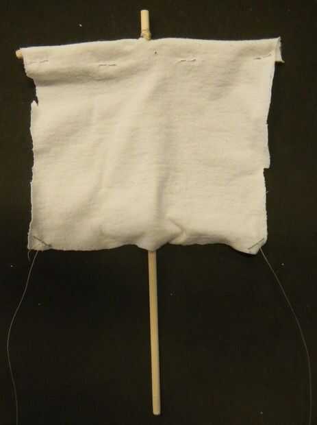 4.) Utilice la grapadora para unir dos grapas en la parte inferior borde exterior de la vela. Esto se utilizará para el montaje en el siguiente paso.