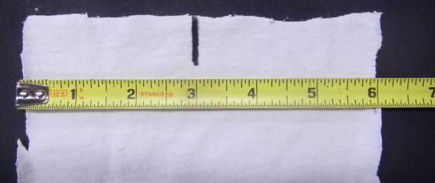 2.) designado uno de los lados a la parte superior. Medir en 3" y hacer una línea 1" pulgada desde el borde del material, como se ve en la foto de arriba.