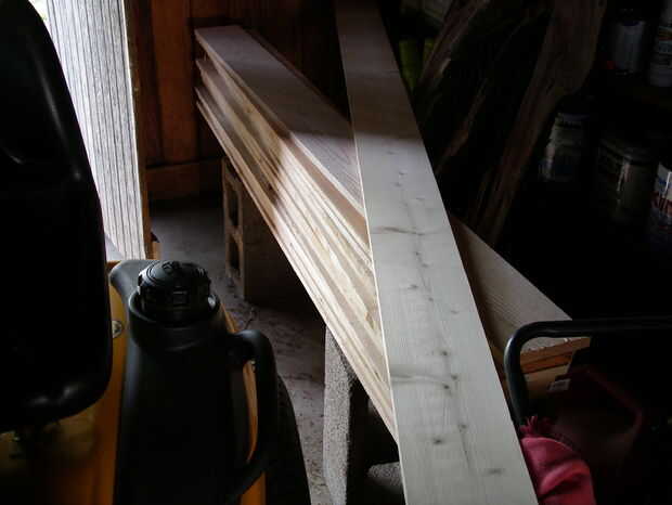 Compré algunos cedro tableros de esgrima que estaban a la venta, eran 5/8 de pulgada de grosor y 8 pulgadas de ancho y 6 pies de largo. así que necesitan cubrir 120 pulgadas con placas ancho 8 pulgadas significa que necesitaba 15 tableros. Porque mi barco es de sólo 3 pies de ancho y disminuye a los 2 pies en los extremos tenía unas tablas sobrantes.