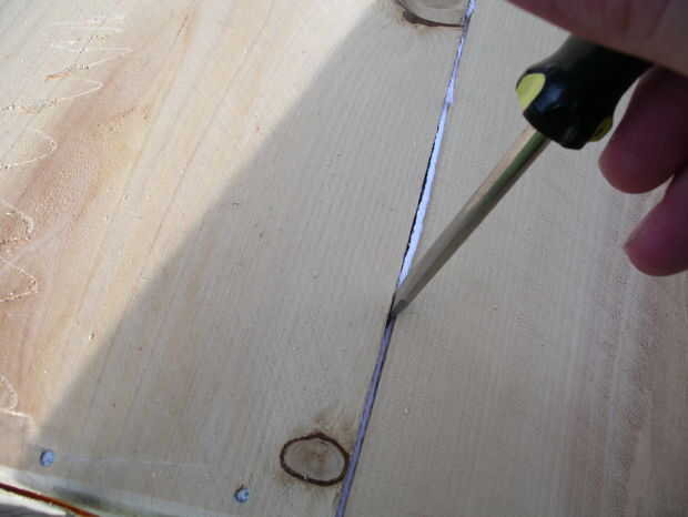 Una vez tienes algunas personas intentarán decirle que necesita un par planchas de calafateo de diverso tamaño y un mazo especial y trata de venderle algunos otros especializados náutica construcción de barcos herramientas. Para un barco pequeño, especialmente un scow, simplemente no necesita nada de eso. Puede sellar todo con un fino flathead destornillador, pero puesto que usted necesita para la masilla de todos modos un metal masilla cuchillo funcionará mejor.