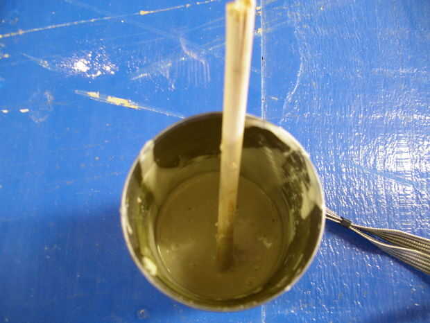 Otra forma de hacerlo sería tomar una botella de jabón de plato de plástico "Amanecer", un corcho y algunos tubos de 1/4 pulgada de cobre y hacer un aplicador de pintura. Sólo haga un orificio en el tapón para el tubo, el tubo debe ser lo suficientemente larga para ir casi hasta el fondo de la botella, poner el tubo en el corcho y doblarla unos 90 grados, luego el extremo del martillo abajo así que hay sólo una rendija para escapar de y lime los bordes hasta aproximadamente 1/16 de pulgada de grosor de la pintura. Sólo llene la botella con la pintura enrarecida y tienes un aplicador grande para los barcos futuro.
