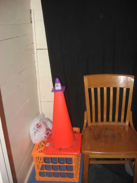 Colgar su tela de "fondo" donde vas a construir tu cueva. Crear un montón de superficies para colocar sus estalagmitas en. Pruebe distintas alturas o incluso protrustions (como el cono del tráfico se muestra) para crear una superficie desigual. Después de que usted está satisfecho con la superficie de la cueva, cuelgue a la tela teñida sobre estas superficies para crear tu cueva paredes/suelo/techo. Tratar de mostrar tan poco de lo que está por debajo es posible!