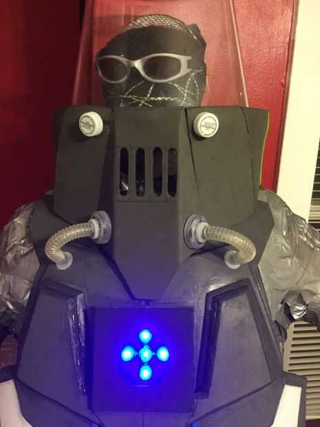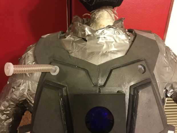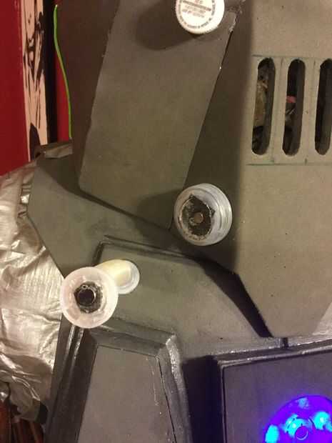 3. añadí dos agujeros de cada lado de la pieza del pecho. Usé un cuchillo del exacto y dremel para. (Foto 2)