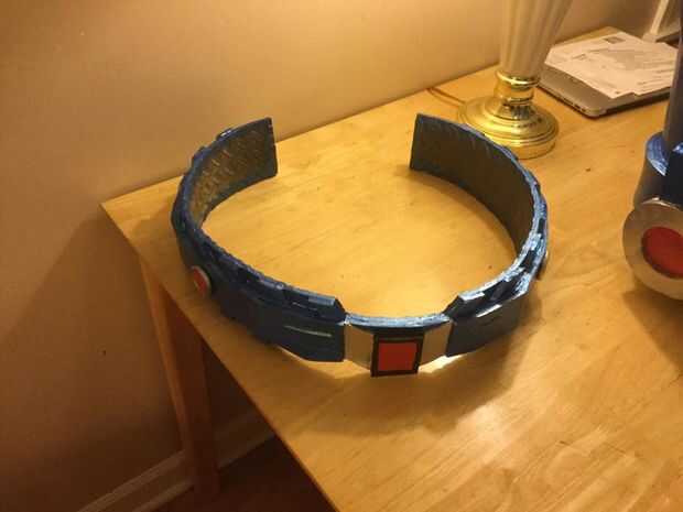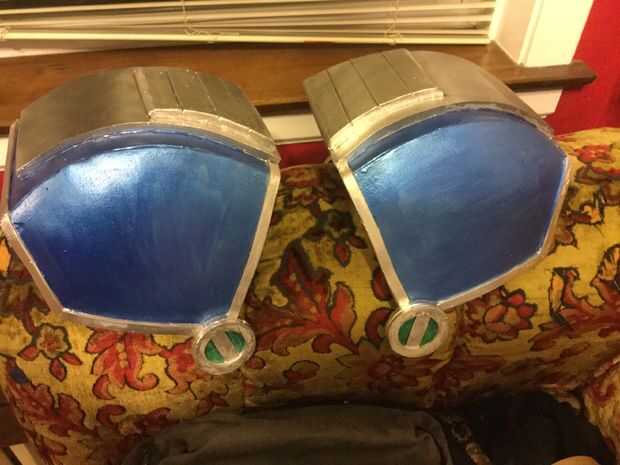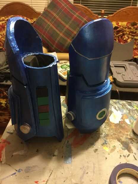 1. antes de pintar cualquier cosa, es necesario preparar las piezas de espuma de EVA. Puede utilizar plástidos (que me parecen más caros), o usar a modge podge mate. una vez seco, fui con un esquema de color azul, plata y rojo metálico para congelar. una vez pintado, claro puede cubrir todo lo posible para dar una capa de protección contra rayaduras / suciedad.
