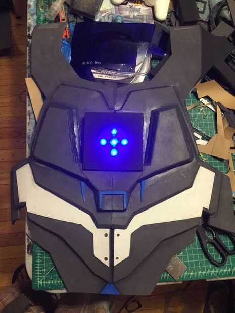 1) cuando hice el pecho, he creado una pieza media donde podía rellenar en un light.take su medida basada en el tamaño de su luz. Usé un cuchillo del exacto y dremel para crear el agujero. realmente hice un agujero directamente a través de por lo que el pic es inexacto. La razón para el agujero completo fue por lo que si es necesario, sólo podría reemplazar las pilas bastante fácilmente (Foto 1)
