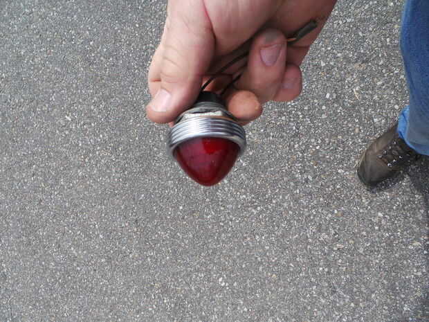 necesitaba una gran luz roja para el delantero, creo que su sea una luz de encendido o parpadea más brillante y dimmer con el nivel de sonido. decidí que era más fácil. He utilizado una luz trasera que encontré ya que parecía casi como en el juego.