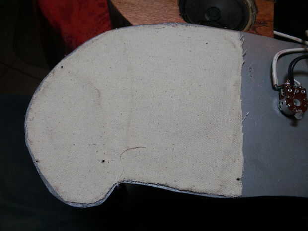 luego había manchado de las superficies exteriores y había pegado de tela al lado interno de las rejillas del altavoz.